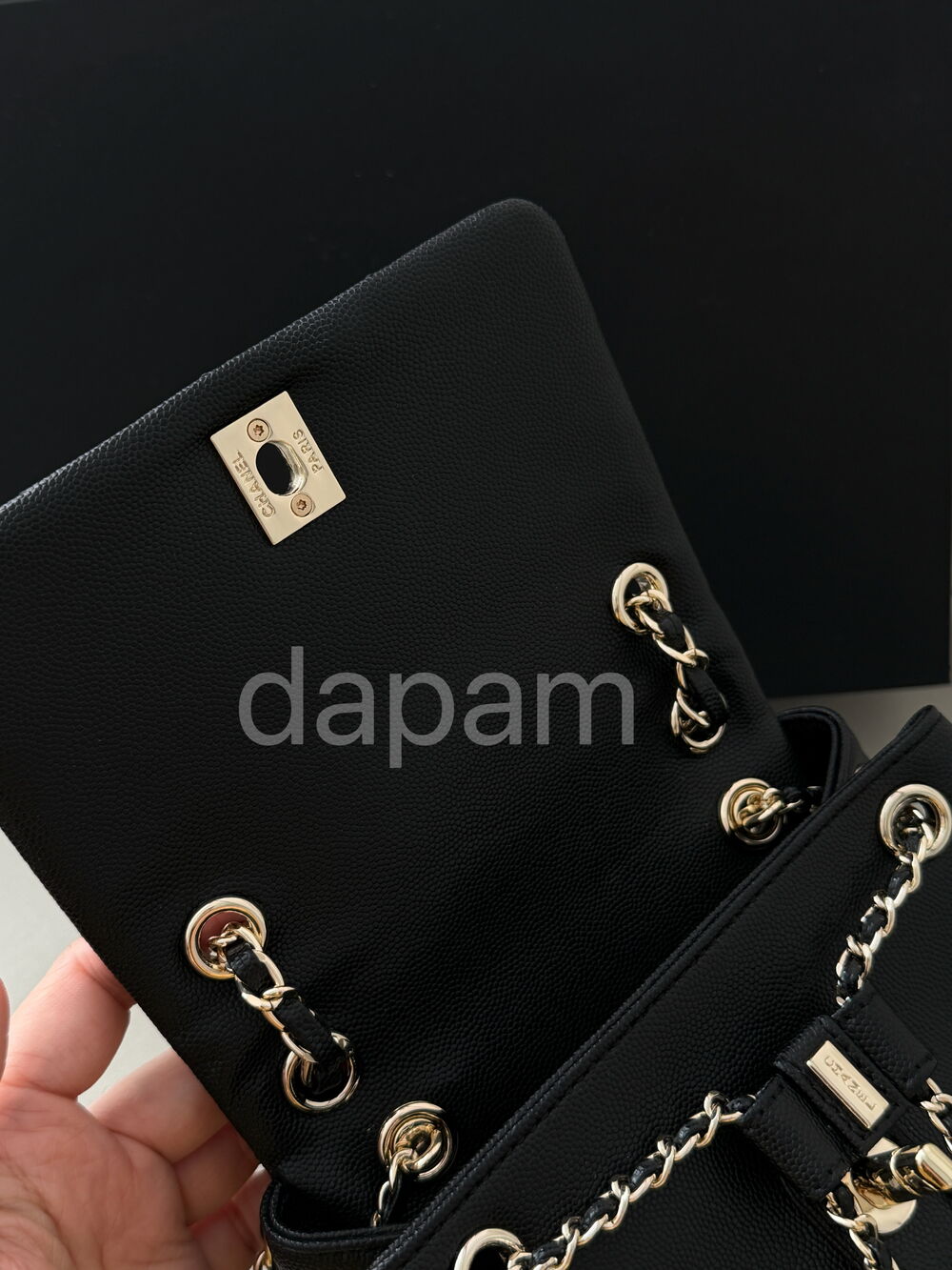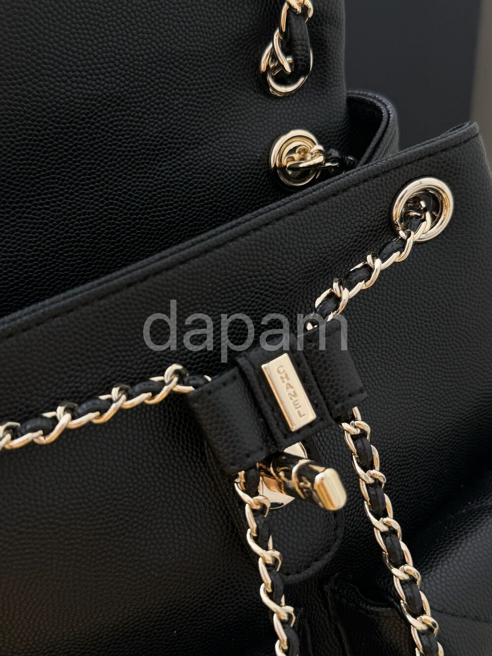 클래식한 블랙 컬러에 캐비어 텍스처 가죽을